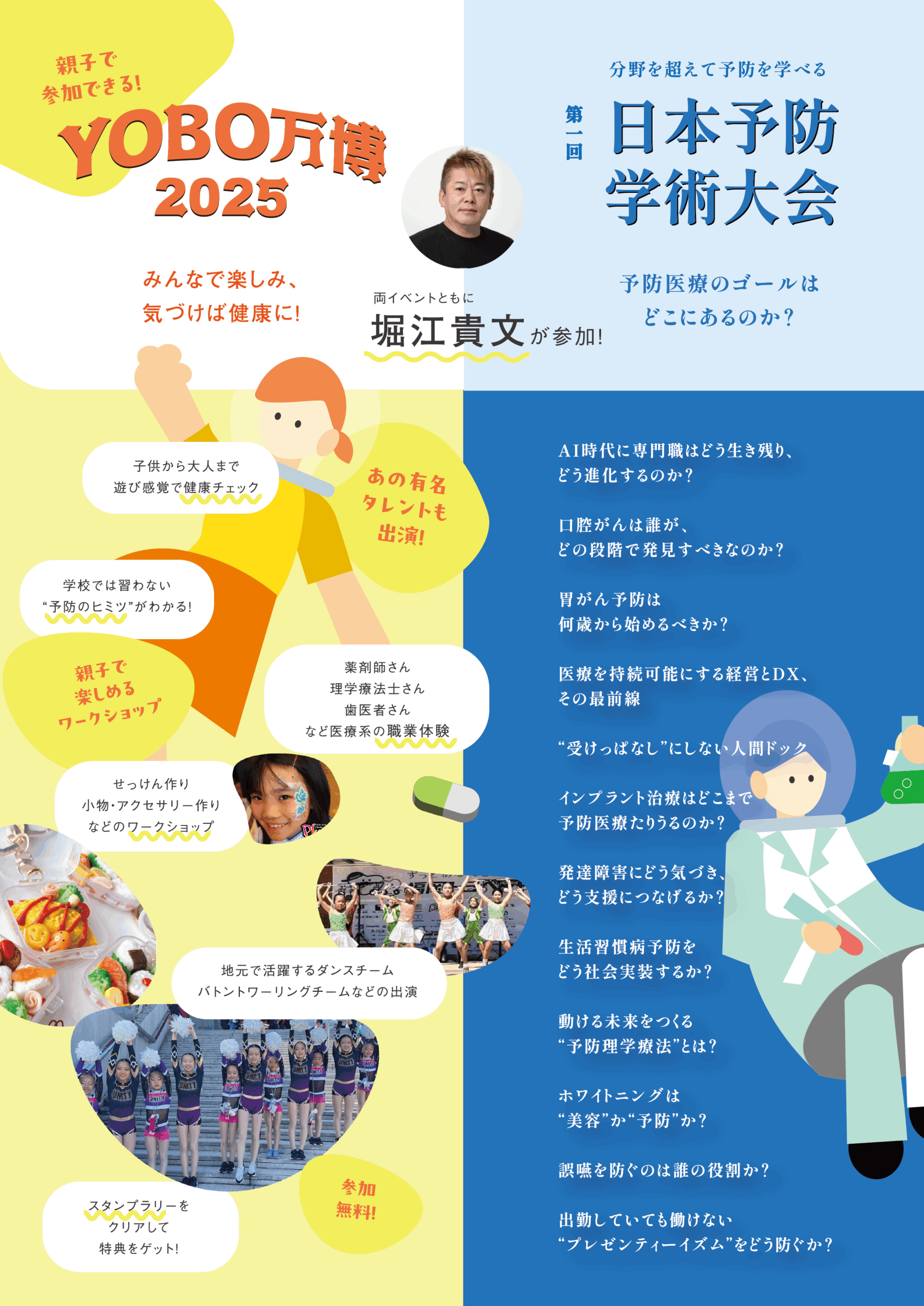 予防医療をテーマとした大型イベント 「YOBO万博2025/第1回日本予防学術大会」、そして1日目終了後に行う 「懇親会」 を開催いたします。
